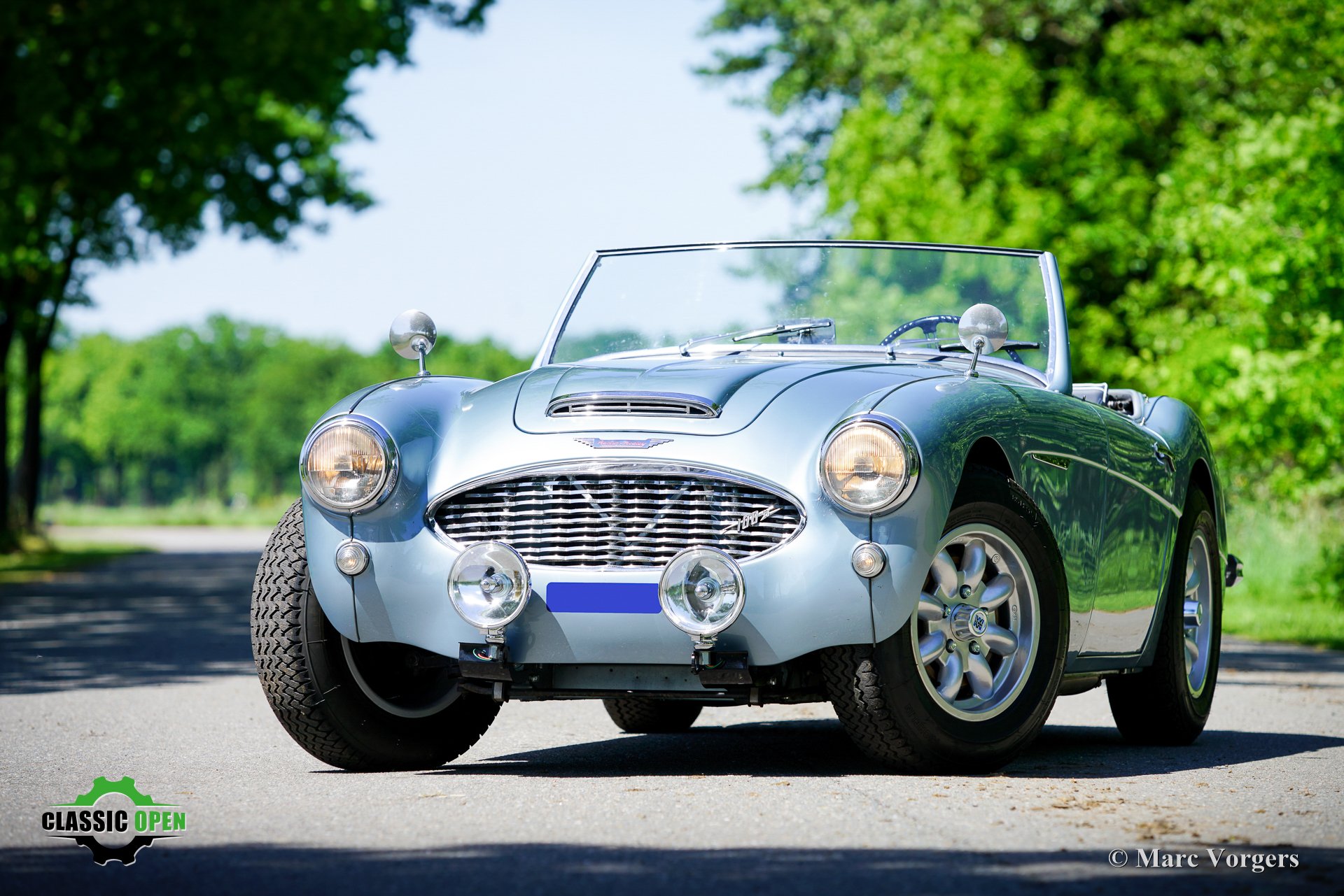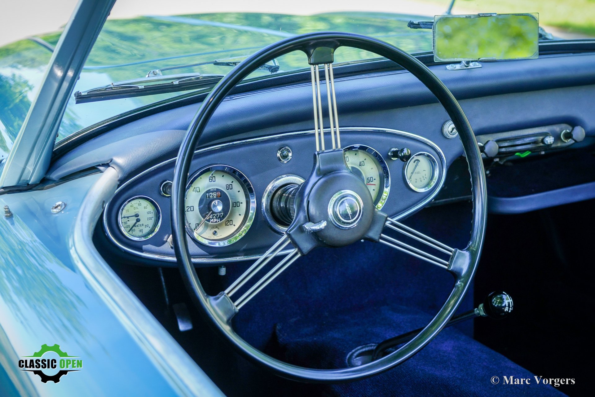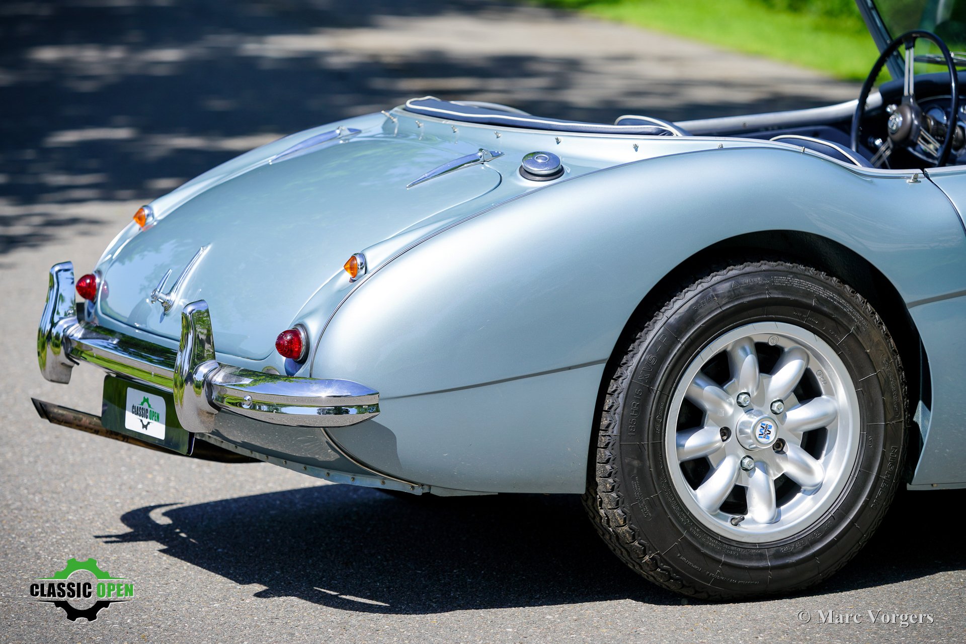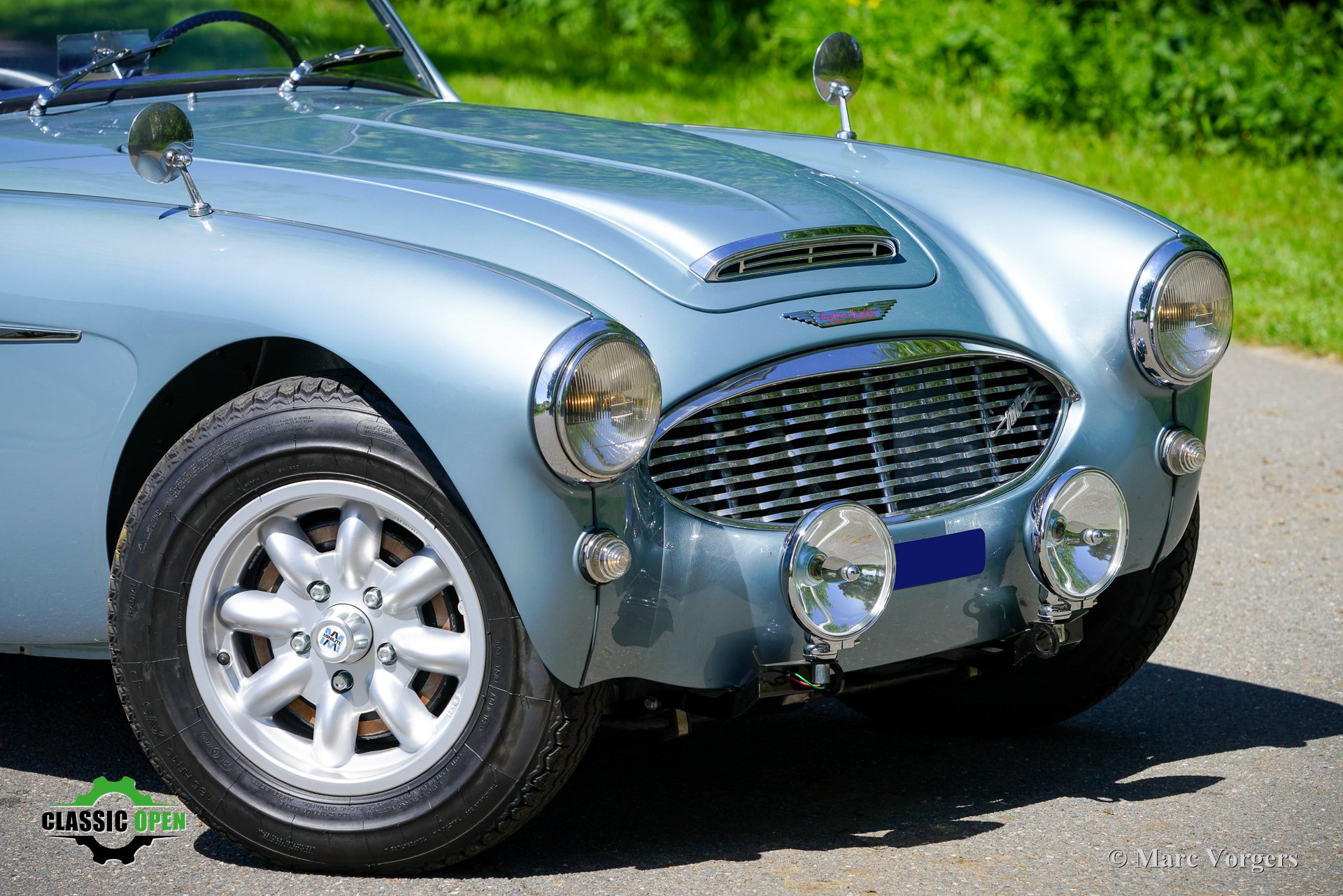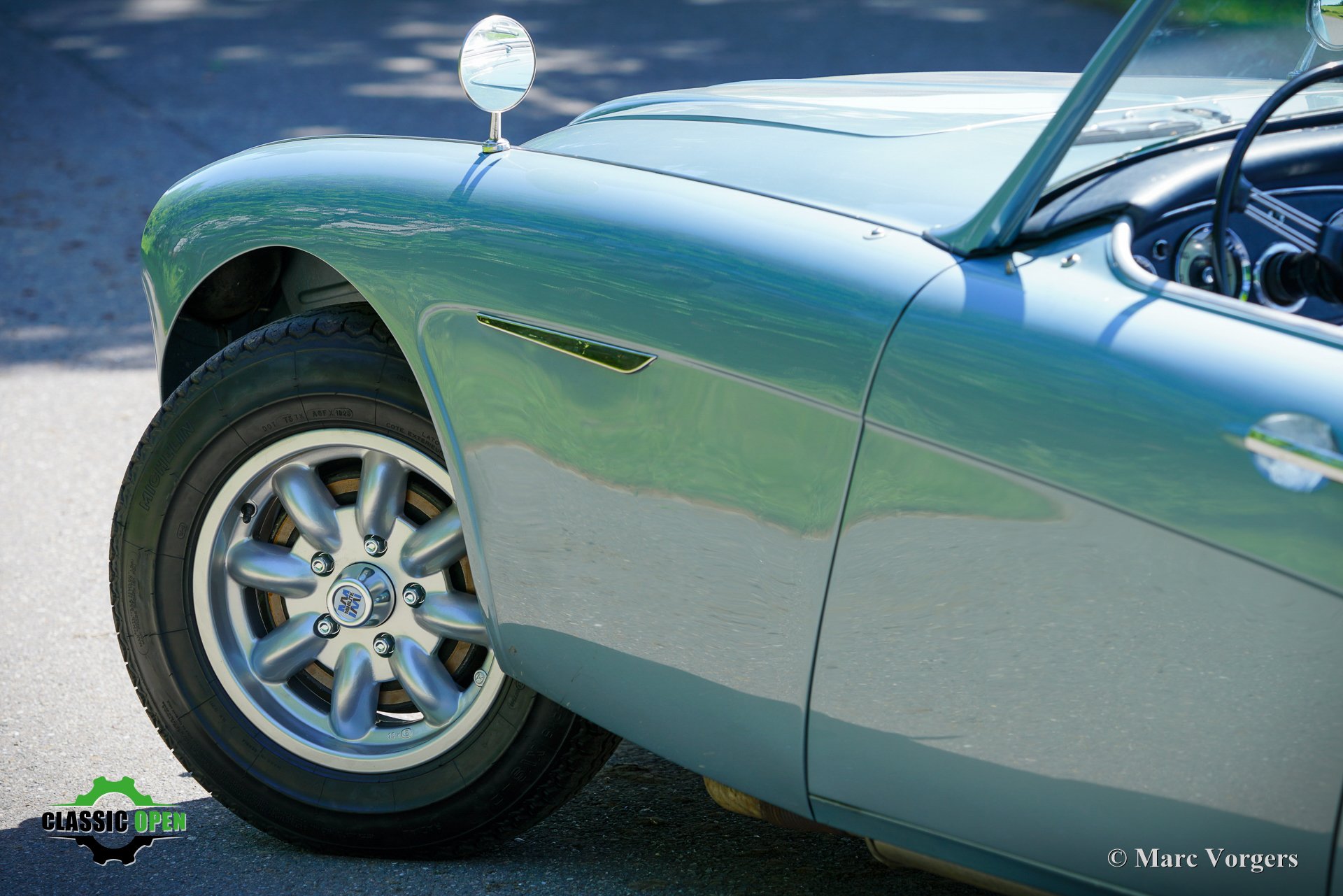 To make the car look sportier, the front bumper was removed. Additional Lucas SLR700 ‘flame Thrower’ spot lamps were added at the front and the original wheels were exchanged for rugged MiniLite alloy wheels shod with Michelin XVS tyres. This is a great looking and superbly driving classic Austin Healey.