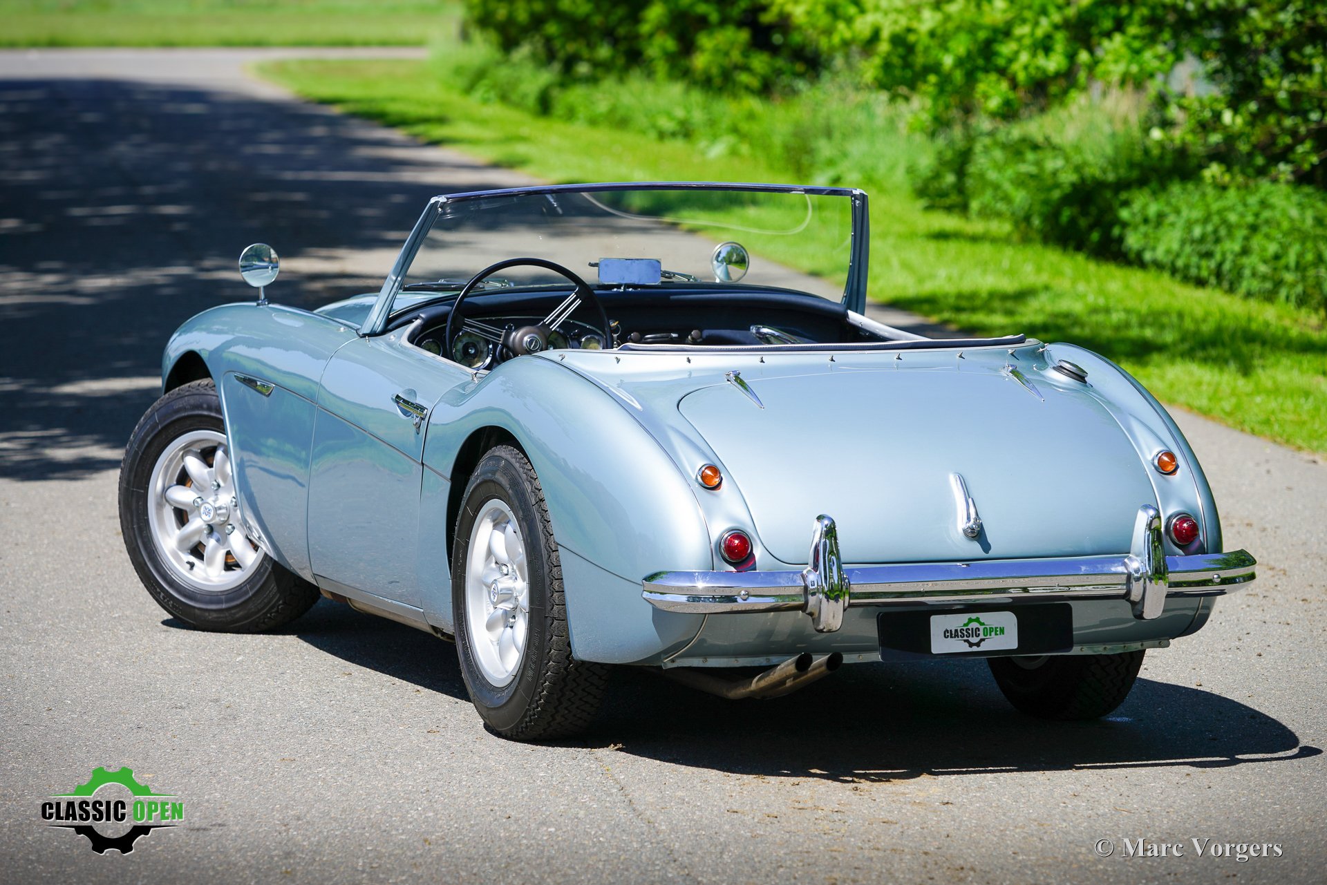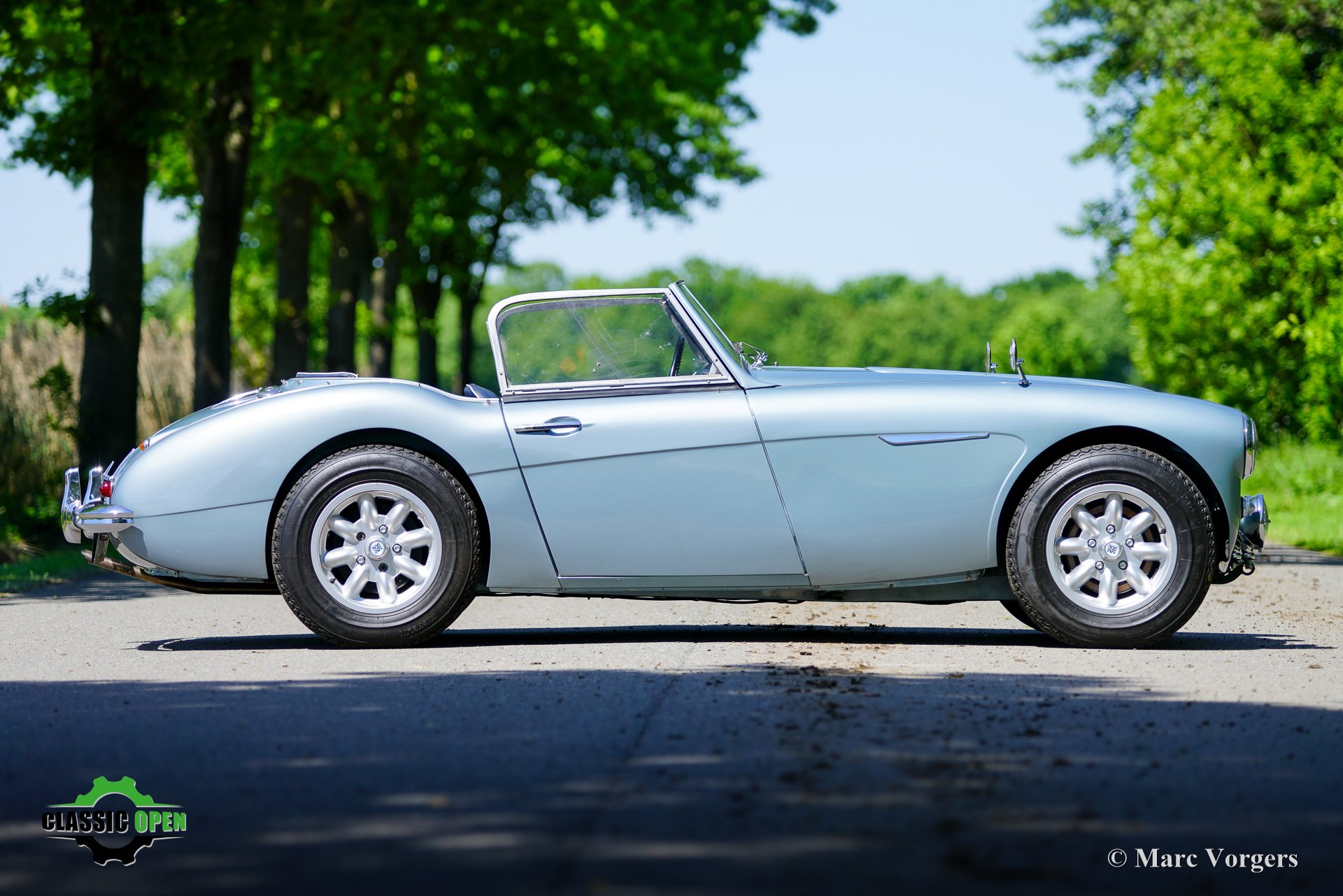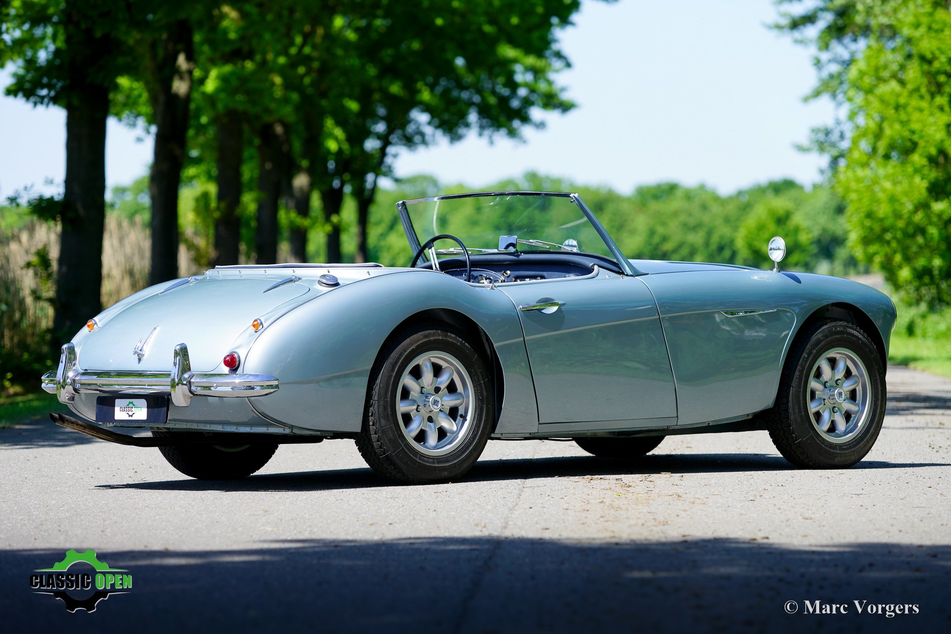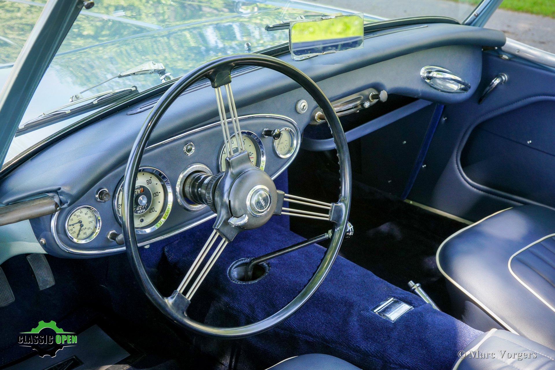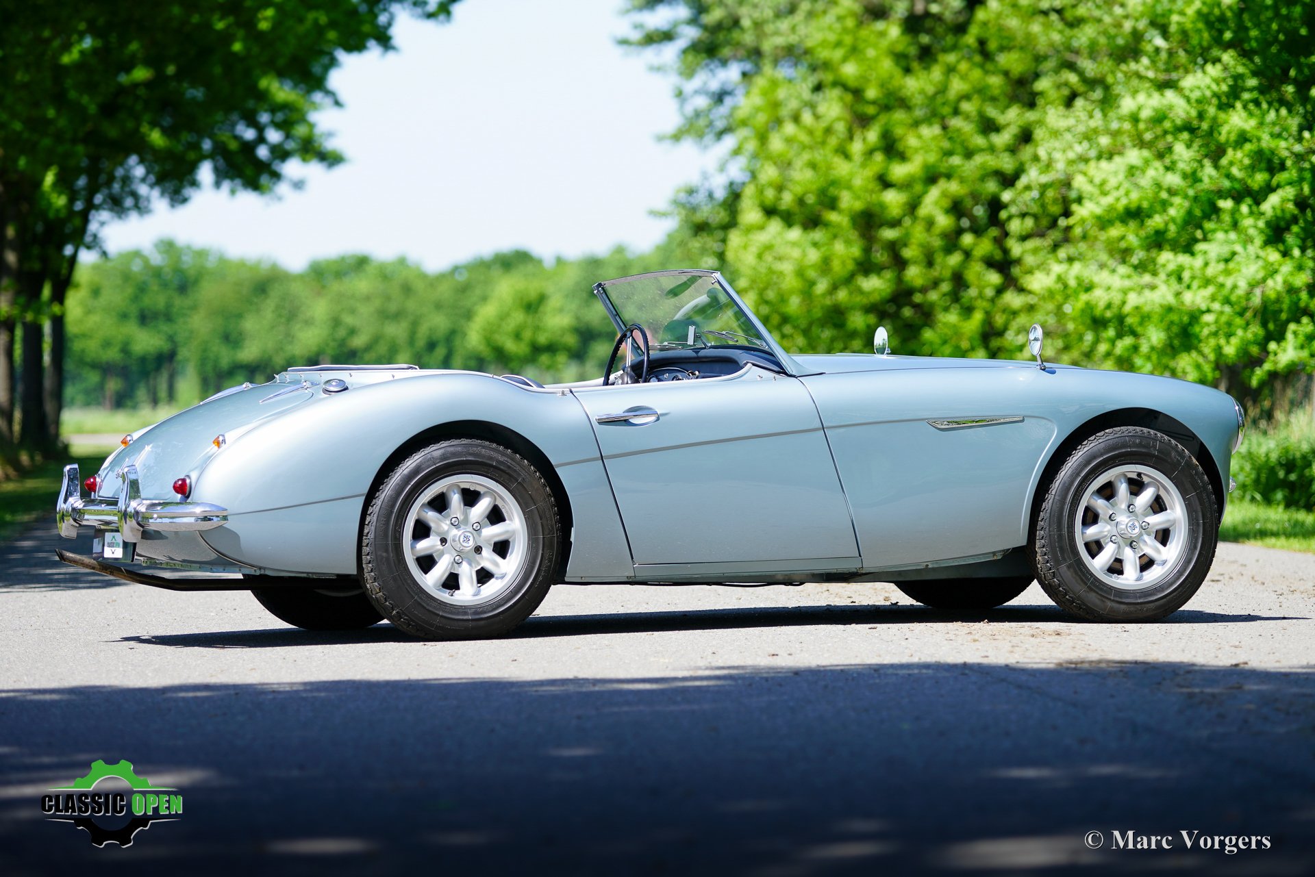 To make the car look sportier, the front bumper was removed. Additional Lucas SLR700 ‘flame Thrower’ spot lamps were added at the front and the original wheels were exchanged for rugged MiniLite alloy wheels shod with Michelin XVS tyres. This is a great looking and superbly driving classic Austin Healey.