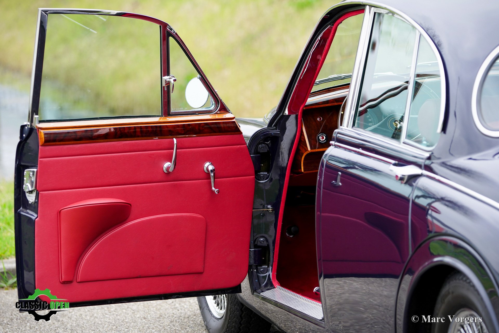 This fine Jaguar Mk II was delivered new in the USA. The car was imported into the Netherlands in 2006 and has been cherished by one caring owner since 2014. It was restored in the past, and the results remain impressive: the bodywork displays excellent panel fit and superb dark blue paintwork. The interior is beautifully upholstered, and the wood cappings were newly varnished during the restoration. The cabin exudes pure 1960s luxury, with soft leather, rich wooden trim, a classic wood veneer dashboard, and a wonderful wood rim Derrington steering wheel.