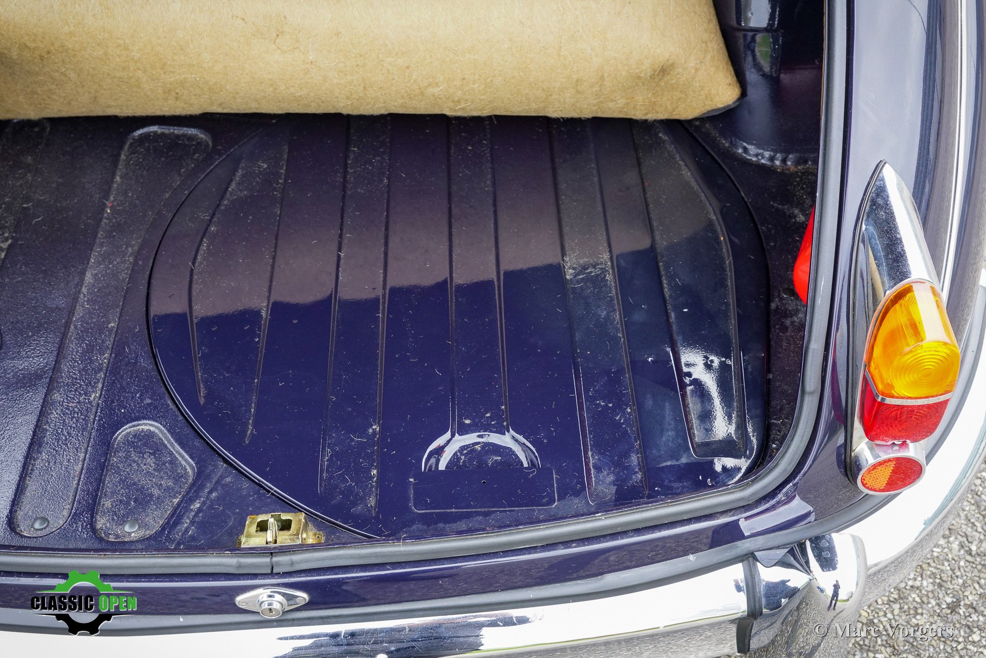 The dark blue exterior highlights the elegant lines that make the Mk II one of the most attractive British saloons ever built. Chrome wire wheels and brightwork further enhance its luxurious appearance. A tasteful detail is the fitment of sporty ‘Coombs spats’ over the rear wheels; the original full spats are also included. The 3.8 litre straight six was the top of the range engine, producing 220 bhp. Power is delivered to the rear wheels through a smoothly shifting automatic gearbox. A highly desirable upgrade is the EZ electric power assisted steering system. Other sensible improvements include an electric cooling fan, an alternator, and electronic ignition.