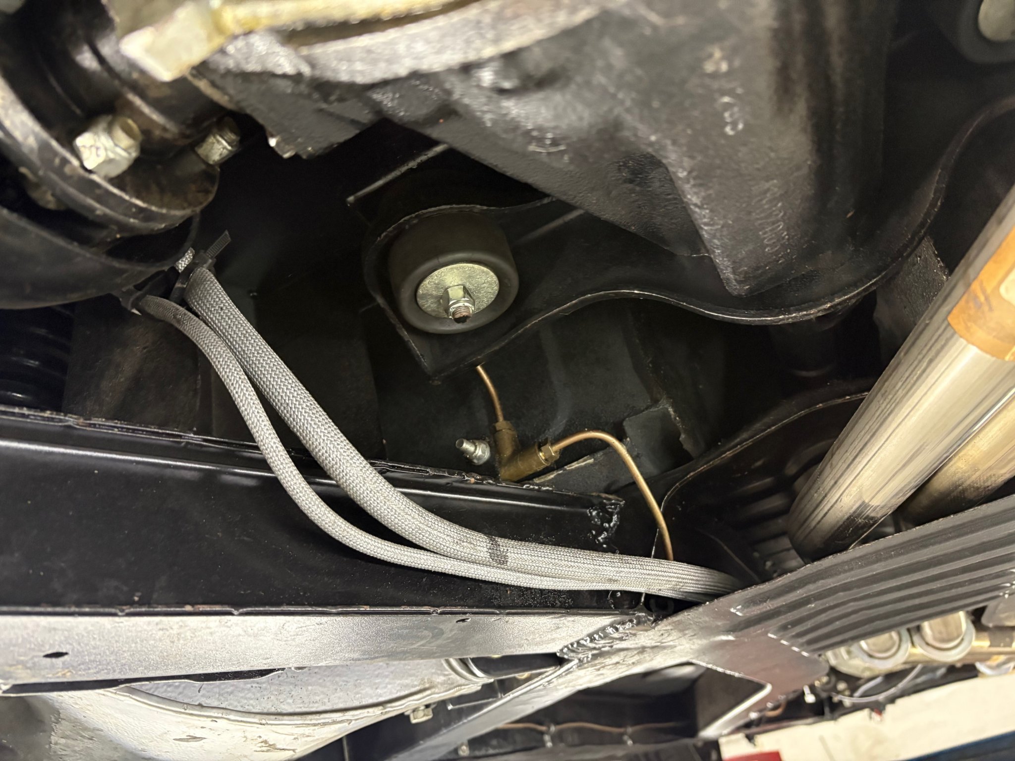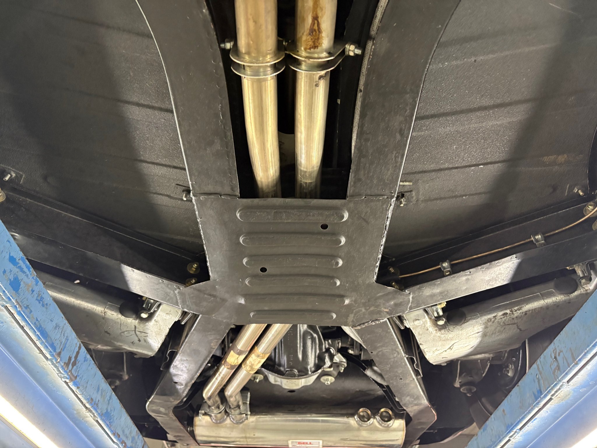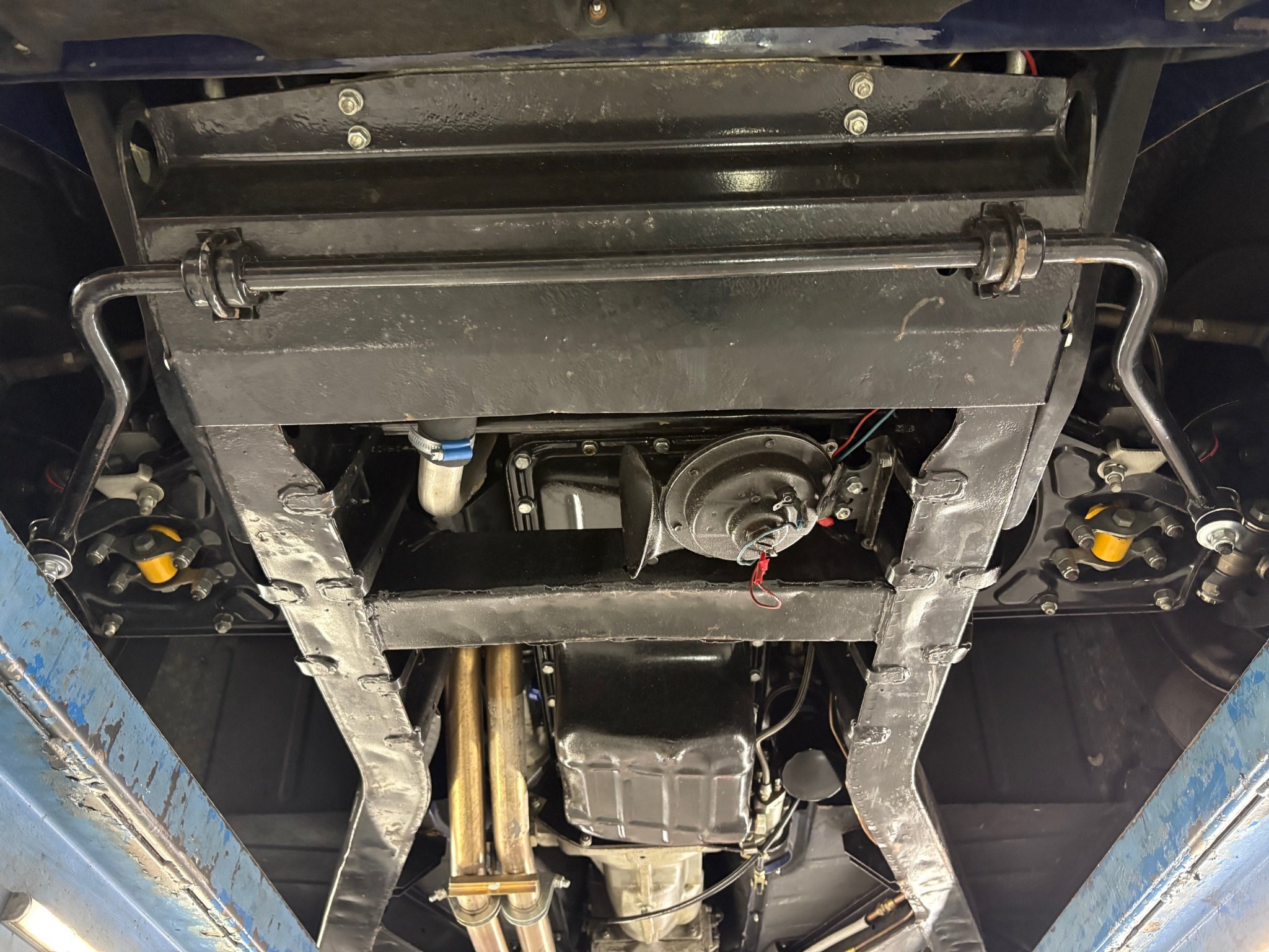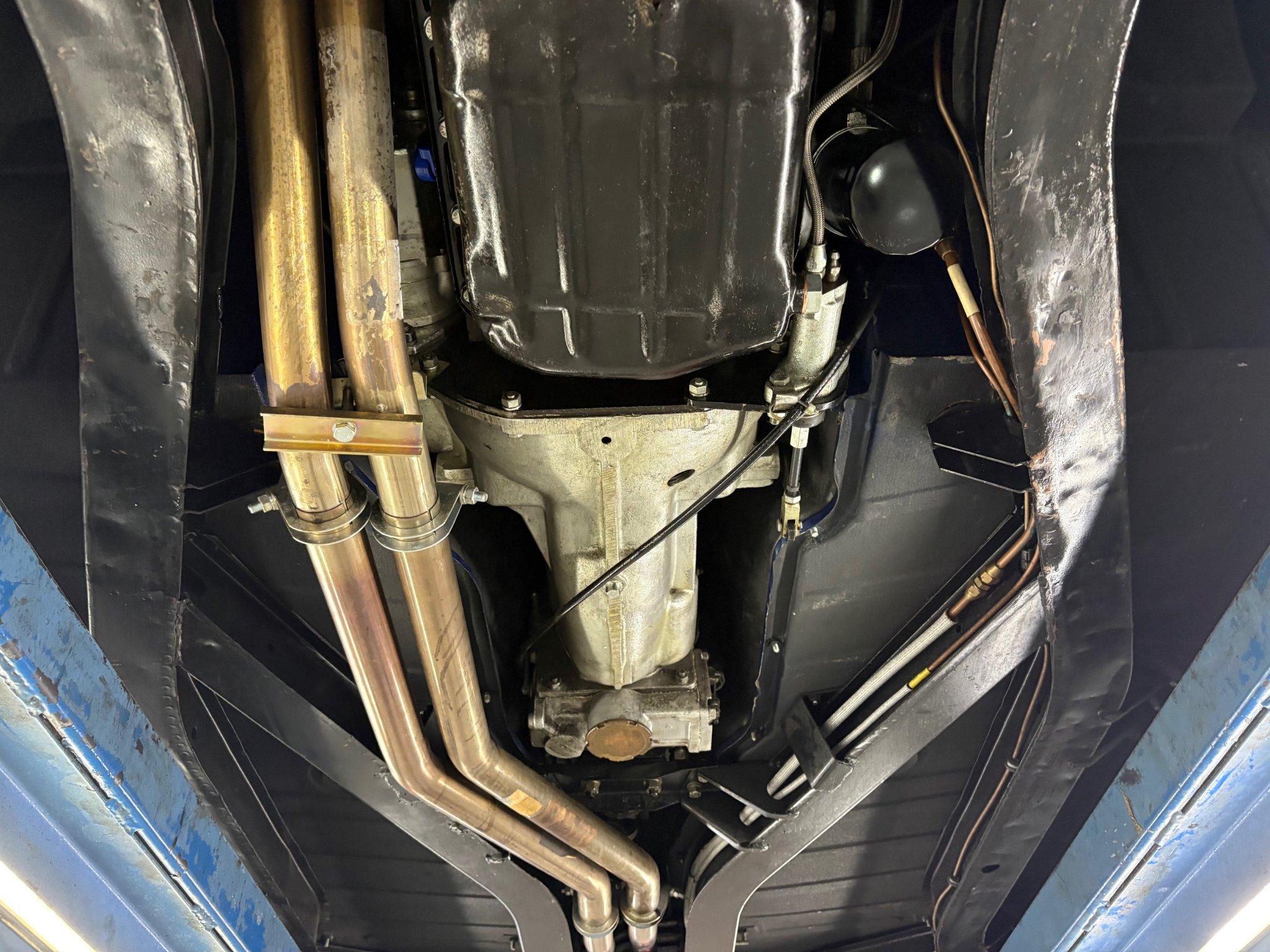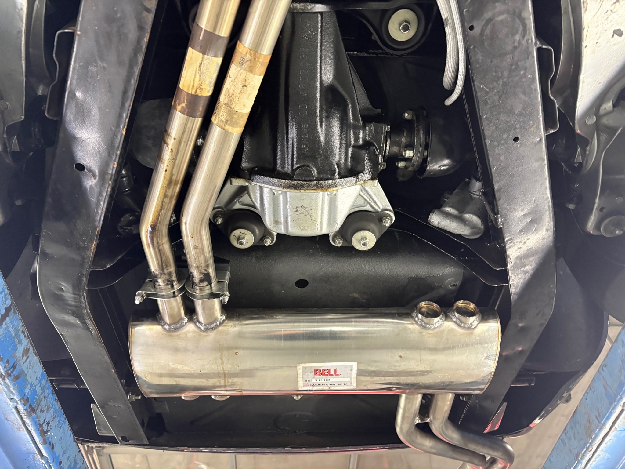 The car is fitted with the following options: overdrive, EZ electric power steering, leather comfort seats with higher backs and headrests, a walnut dashboard, two chrome door mounted rear view mirrors, a Moto Lita wood rim steering wheel, an aluminium high capacity radiator, electronic ignition, and a stainless steel exhaust system.